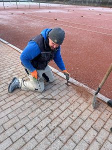 Der Spatenstich für unsere neue Flutlichtanlage ist erfolgt.